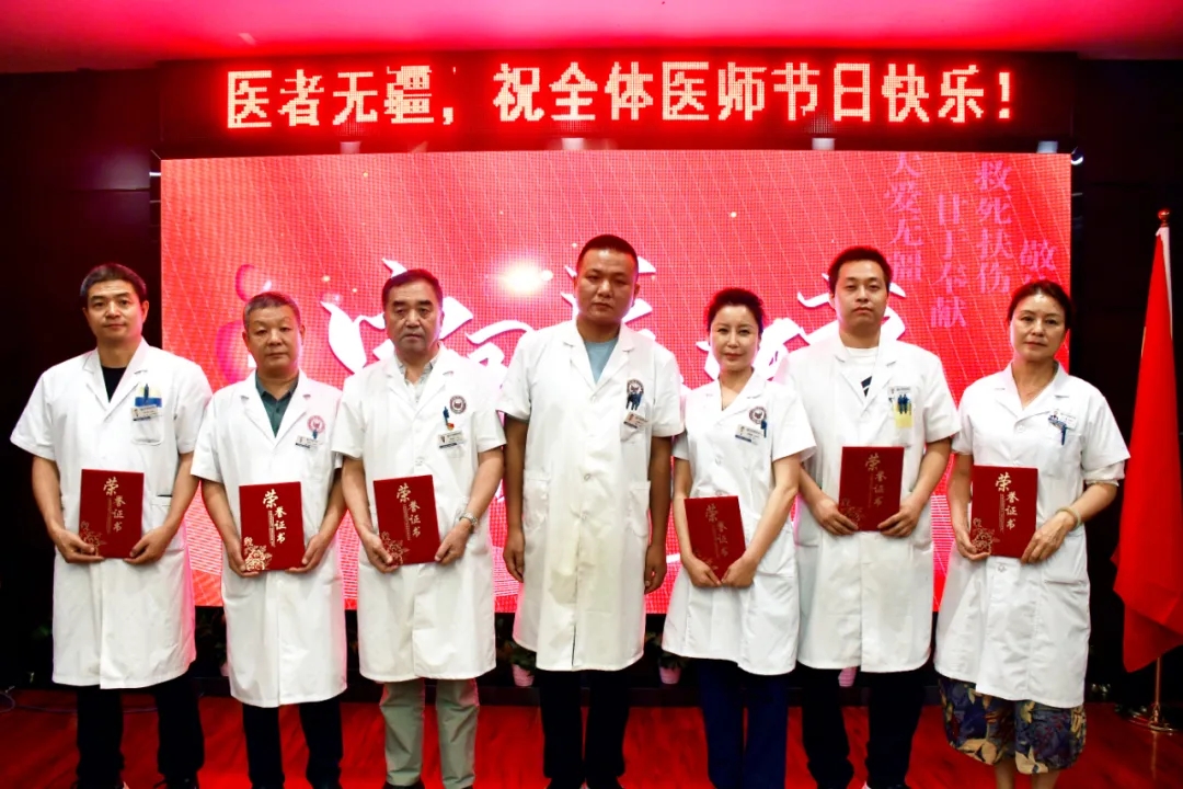 (王院长为优秀医师张小宏、李彬、李洪廷、苗秀娟、王伟超、王敏颁发荣誉证书)